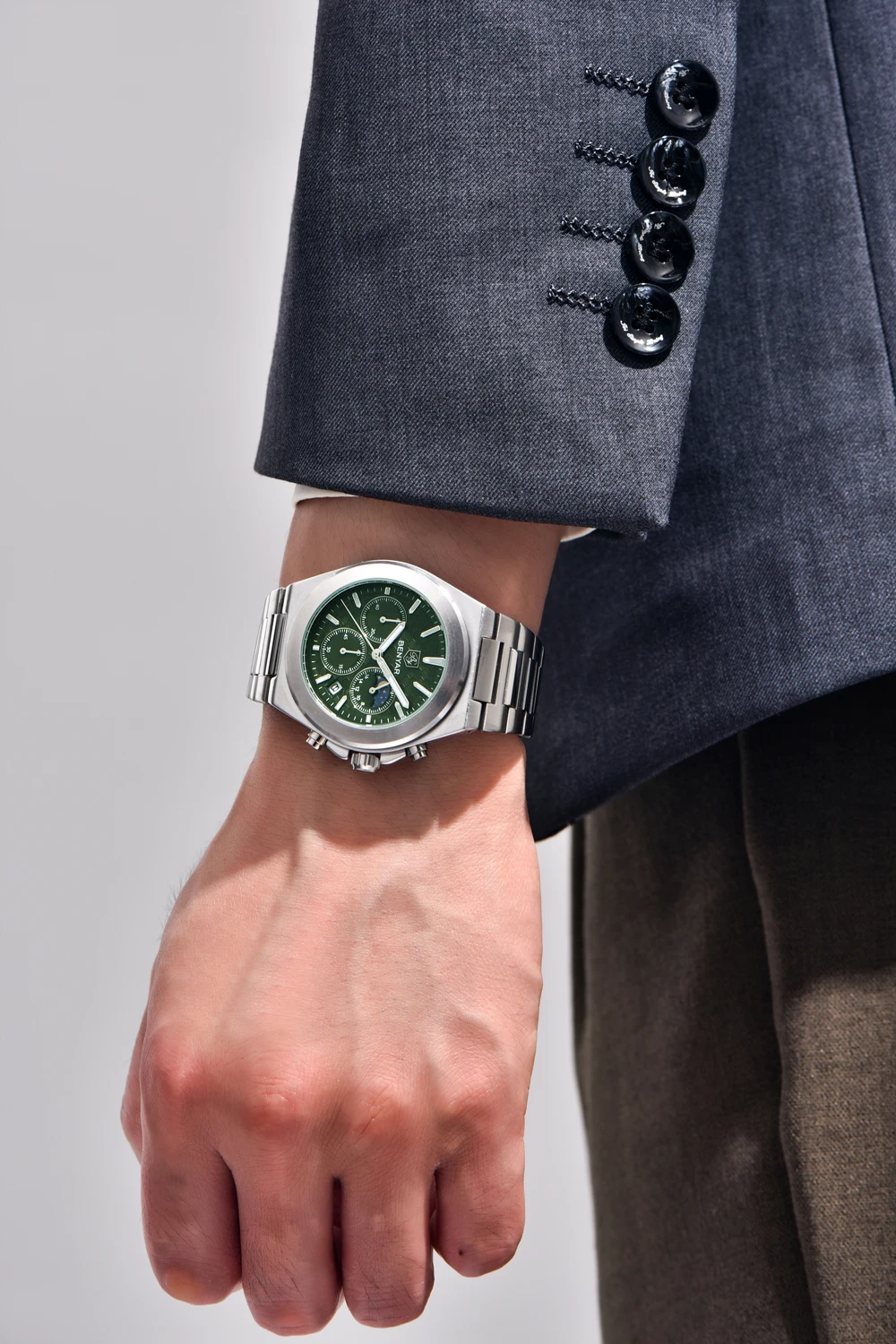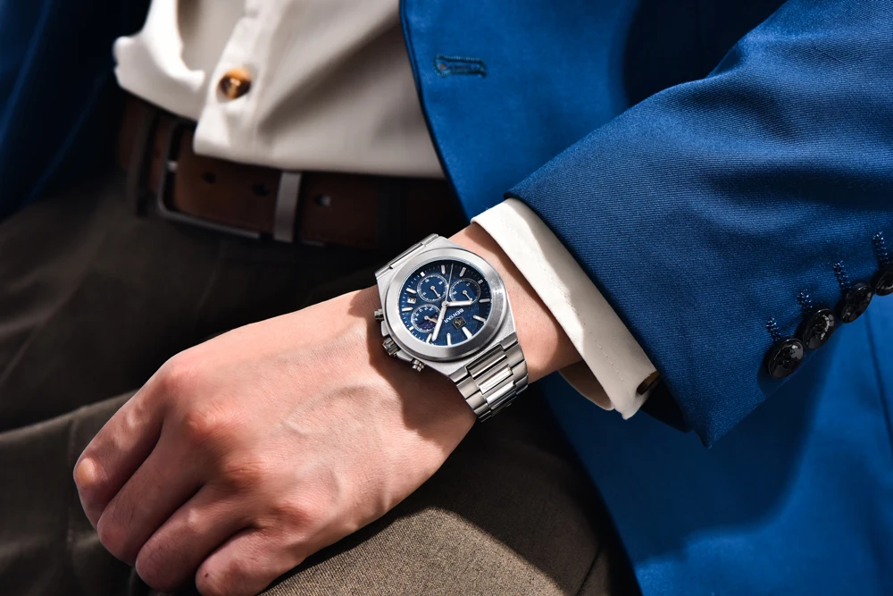 - Luxurious and Durable Style: Features a luxurious design with a chronograph function, a robust alloy case, and an elegant stainless steel bracelet with a safety clasp.