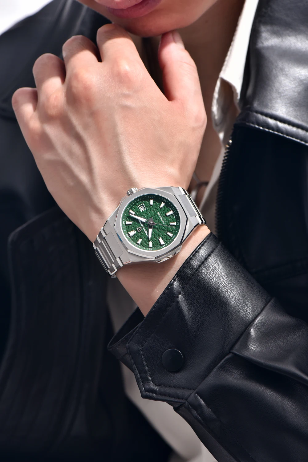The PAGANI DESIGN PD-YS023 is the epitome of business style. This sophisticated timepiece is powered by a precise Japanese-made automatic movement, requiring no batteries. Its slim case (11.2mm) is crafted from stainless steel and protected by a virtually scratch-resistant sapphire crystal. With 10 bar water resistance, the PD-YS023 is the symbol of enduring elegance and executive reliability.